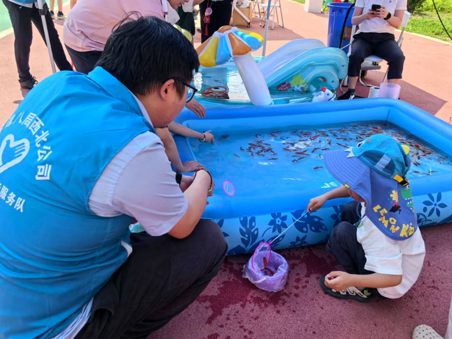 隨后的趣味游戲環(huán)節(jié),套圈、猜謎、釣魚(yú)等游戲輪番上演,現(xiàn)場(chǎng)氣氛熱烈歡騰。孩子們?cè)谟螒蛑斜M情歡笑,感受著來(lái)自社會(huì)的關(guān)愛(ài)與溫暖。團(tuán)員青年們也積極參與,與孩子們親密互動(dòng),用實(shí)際行動(dòng)踐行志愿服務(wù)精神,拉近了與孩子們的距離。
