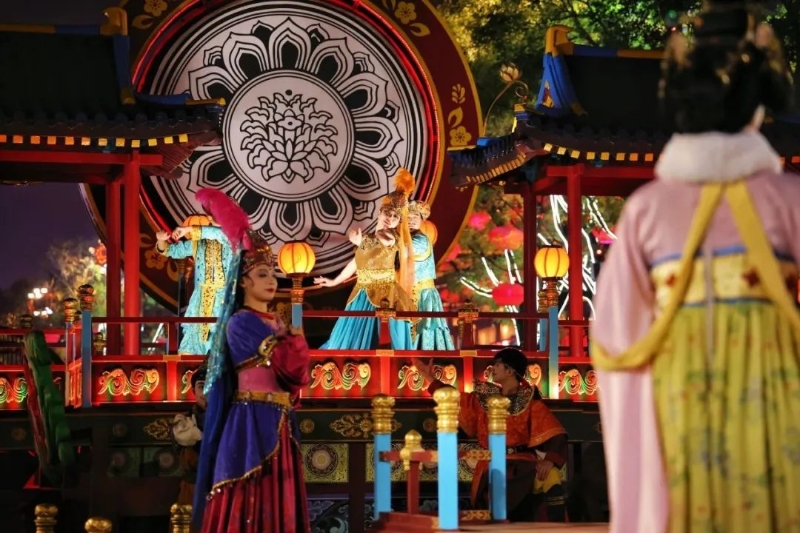 再如“景演融合”大唐芙蓉園景區(qū)運(yùn)營模式,游客可一站式在芳林苑主題精品酒店住宿、御宴宮主題宴會餐廳享受美食,在歷史感拉滿的景區(qū)里沉浸式打卡演藝《夢回大唐》《大唐追夢》等,甚至二刷三刷,這里已成為游客來西安“必打卡清單”之一。