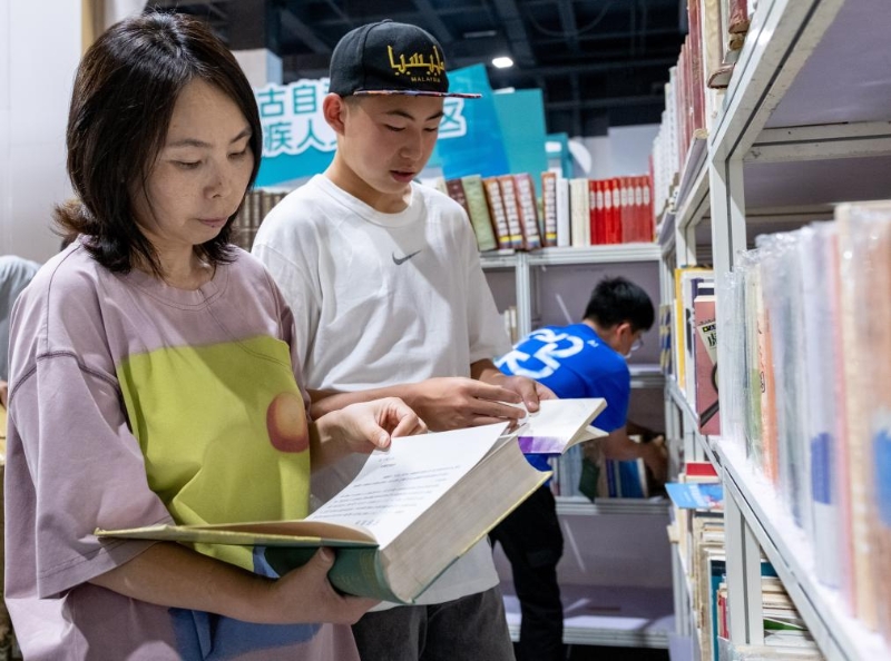 讀者在2025北疆書(shū)展現(xiàn)場(chǎng)閱讀圖書(shū)。新華社記者 馬金瑞 攝